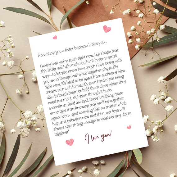 Long Distance Relationship Romantic Love Letter, Printable Card